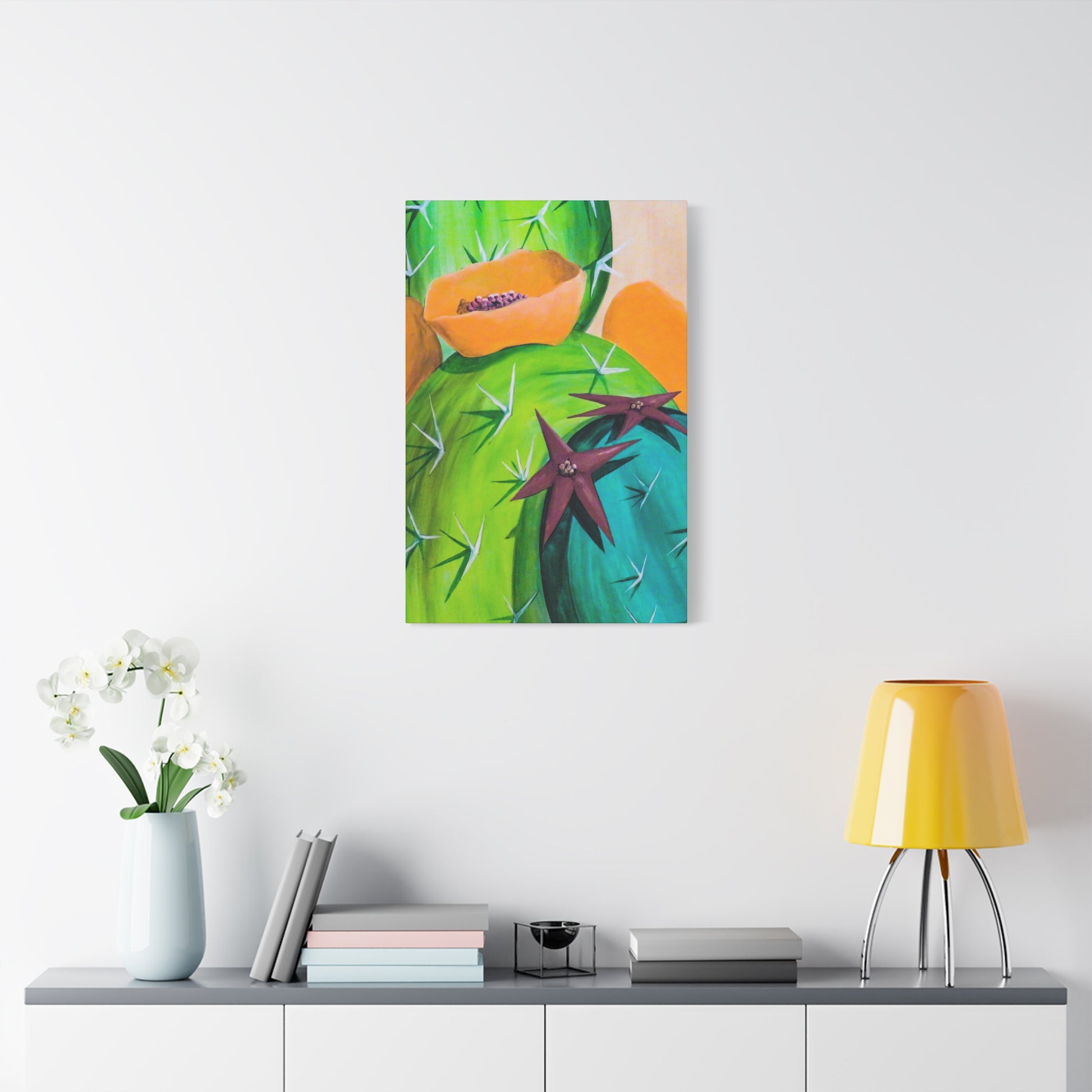 Ted Clifton’s vibrant interpretation of a cactus bursts with unusual, imaginative blooms. A modern twist on a classic Southwest subject, blending bold colors and striking forms into a captivating visual statement.