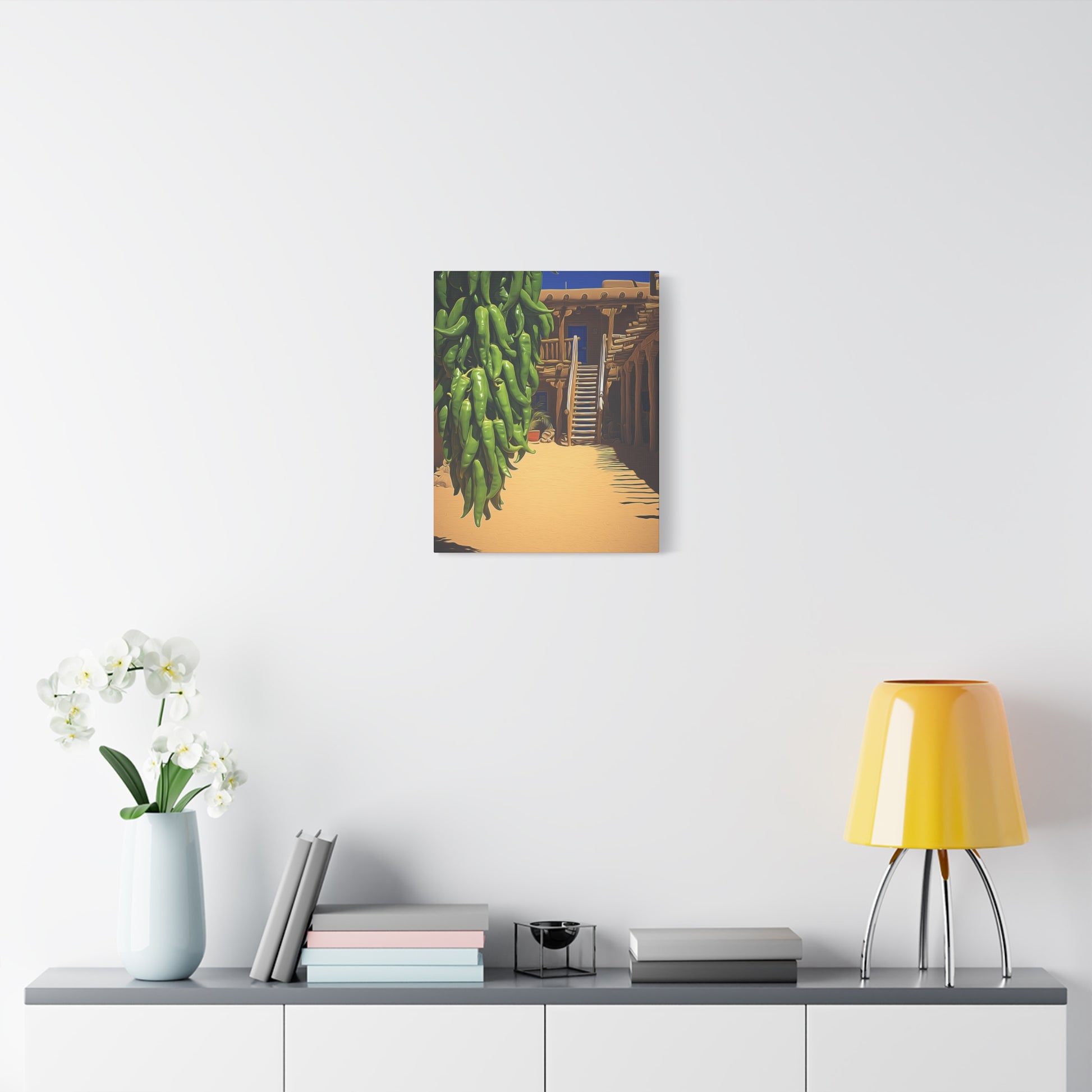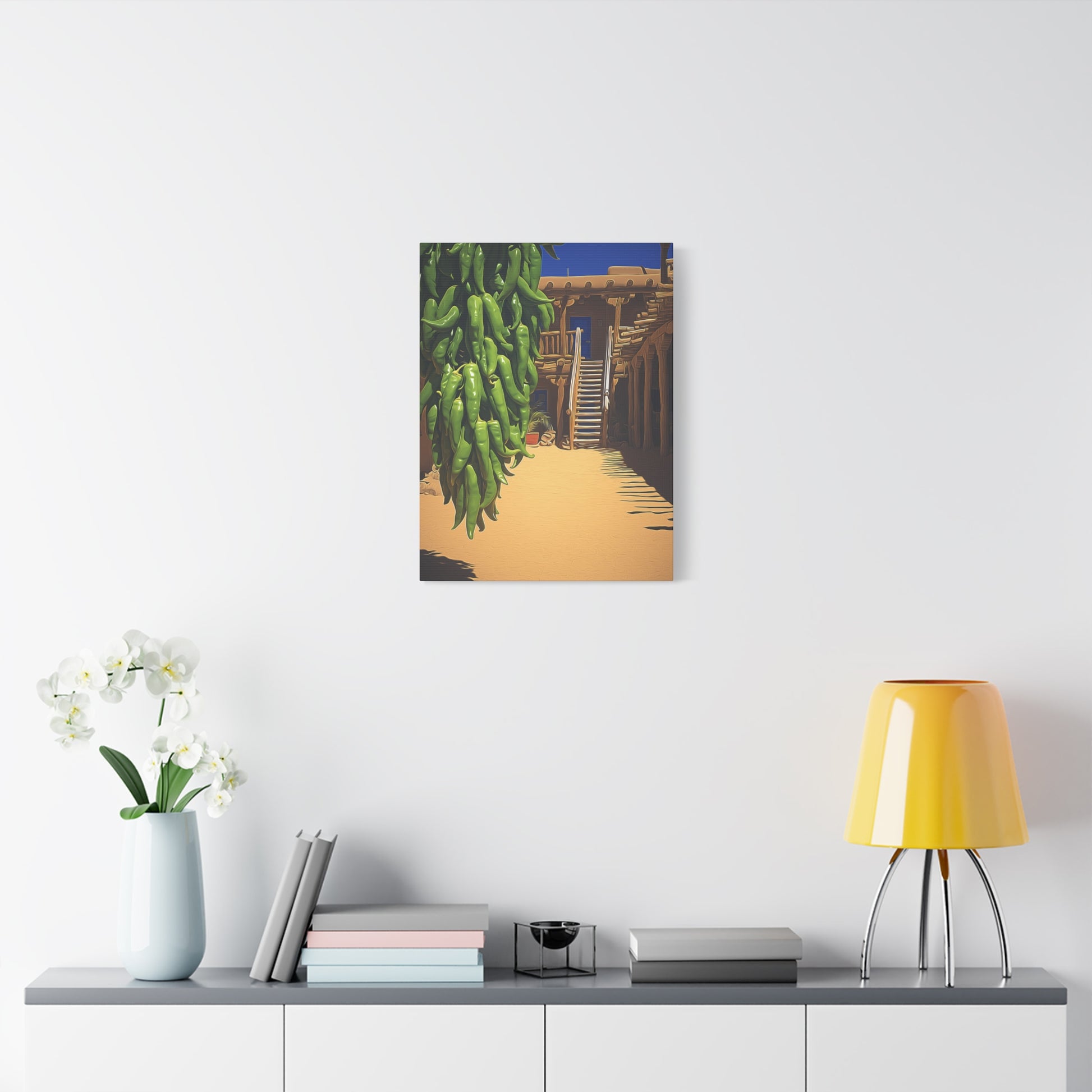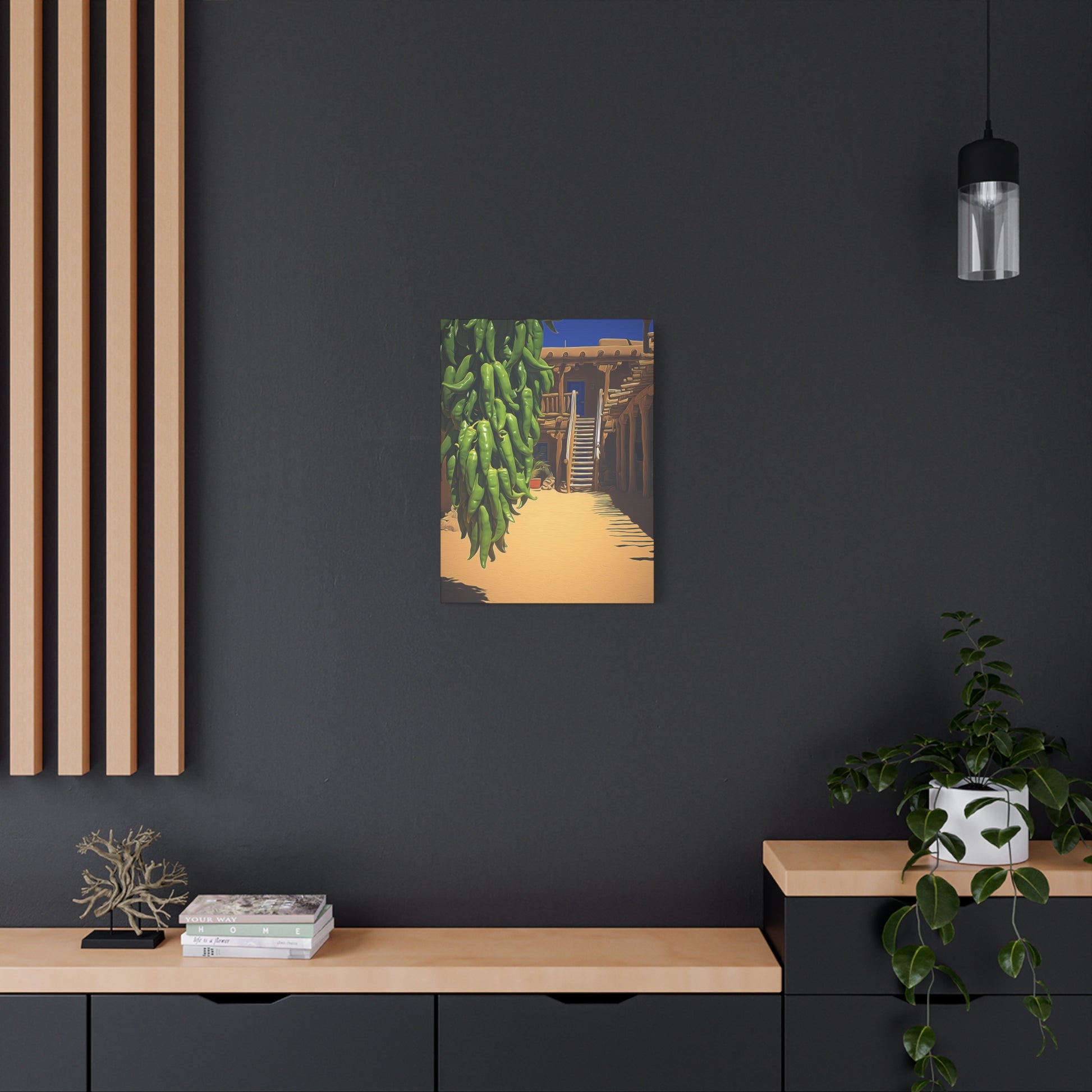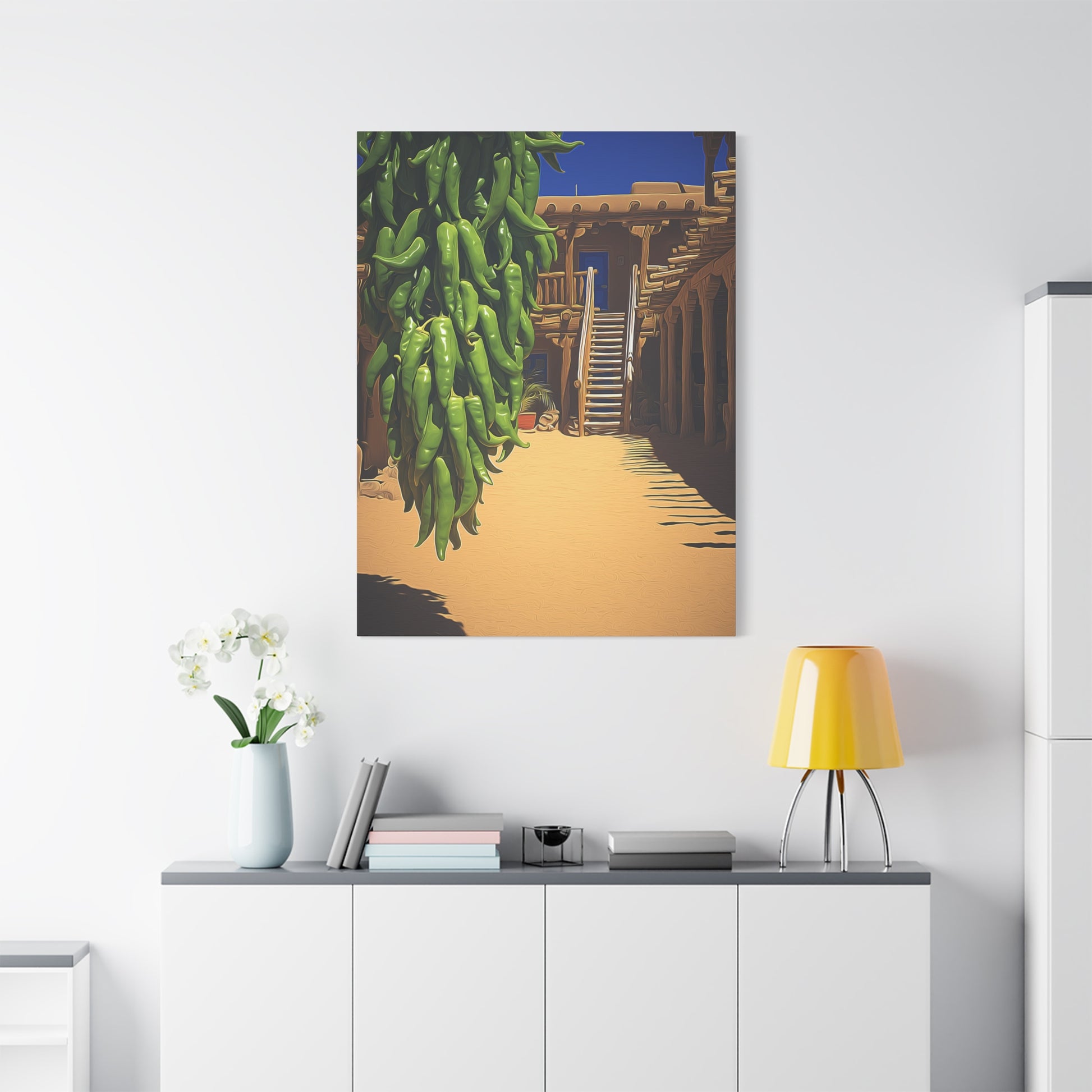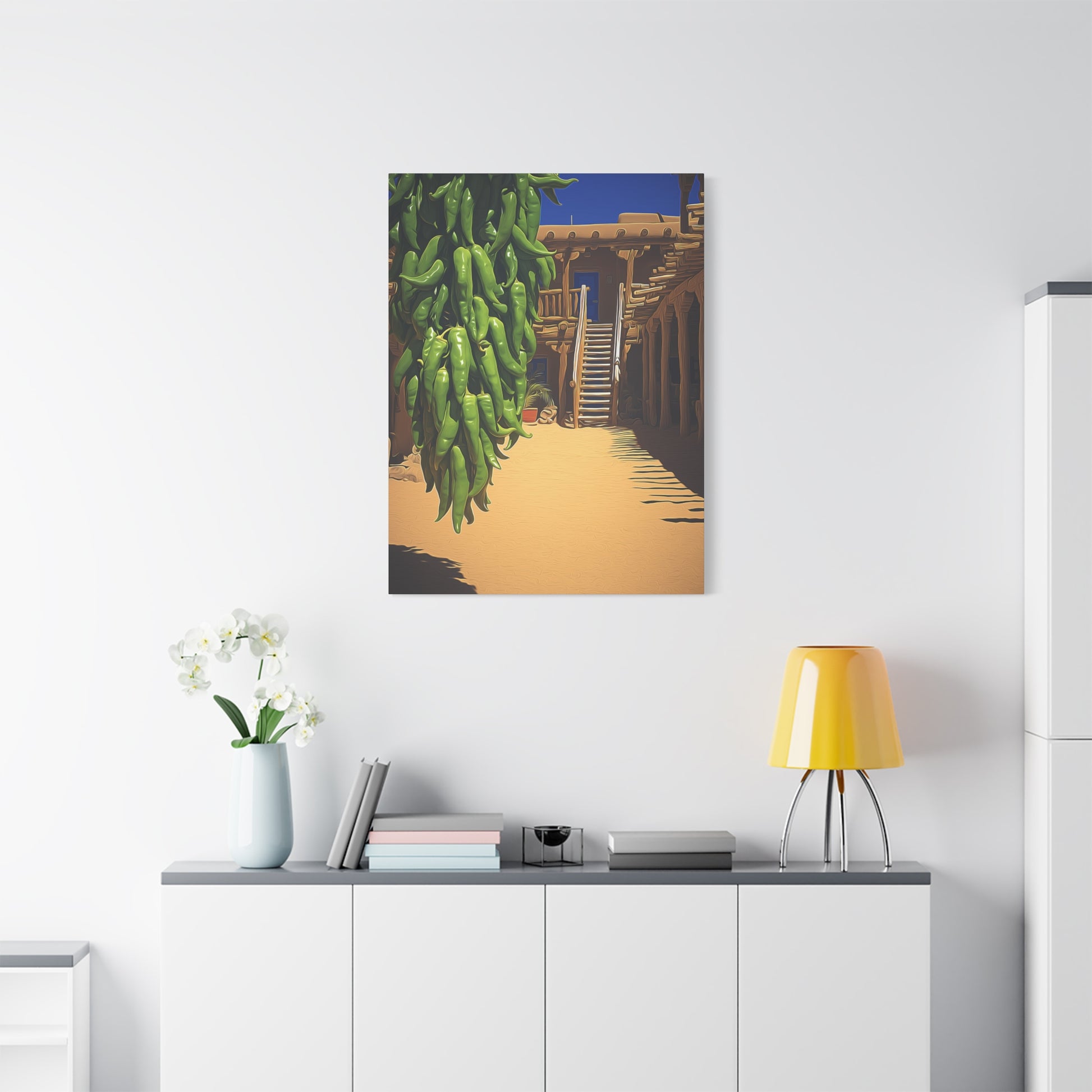 Hatch Green Chile Casa – Famous Hatch green chile hanging to dry in the yard of a colorful adobe casa in Hatch, New Mexico, celebrating the region’s rich flavor and tradition.
