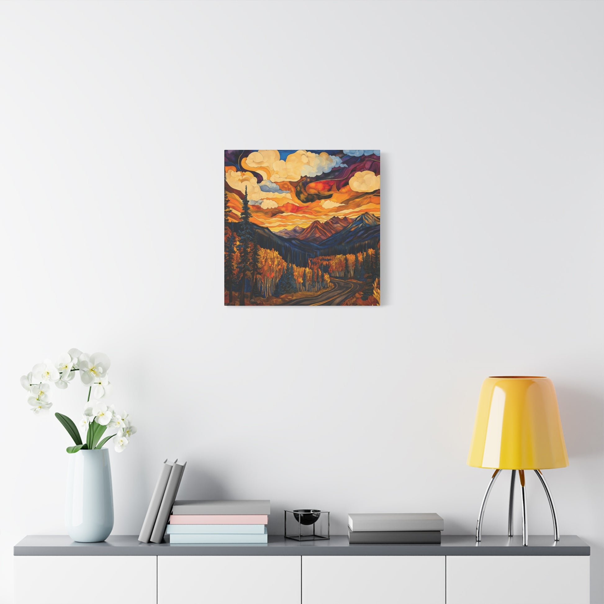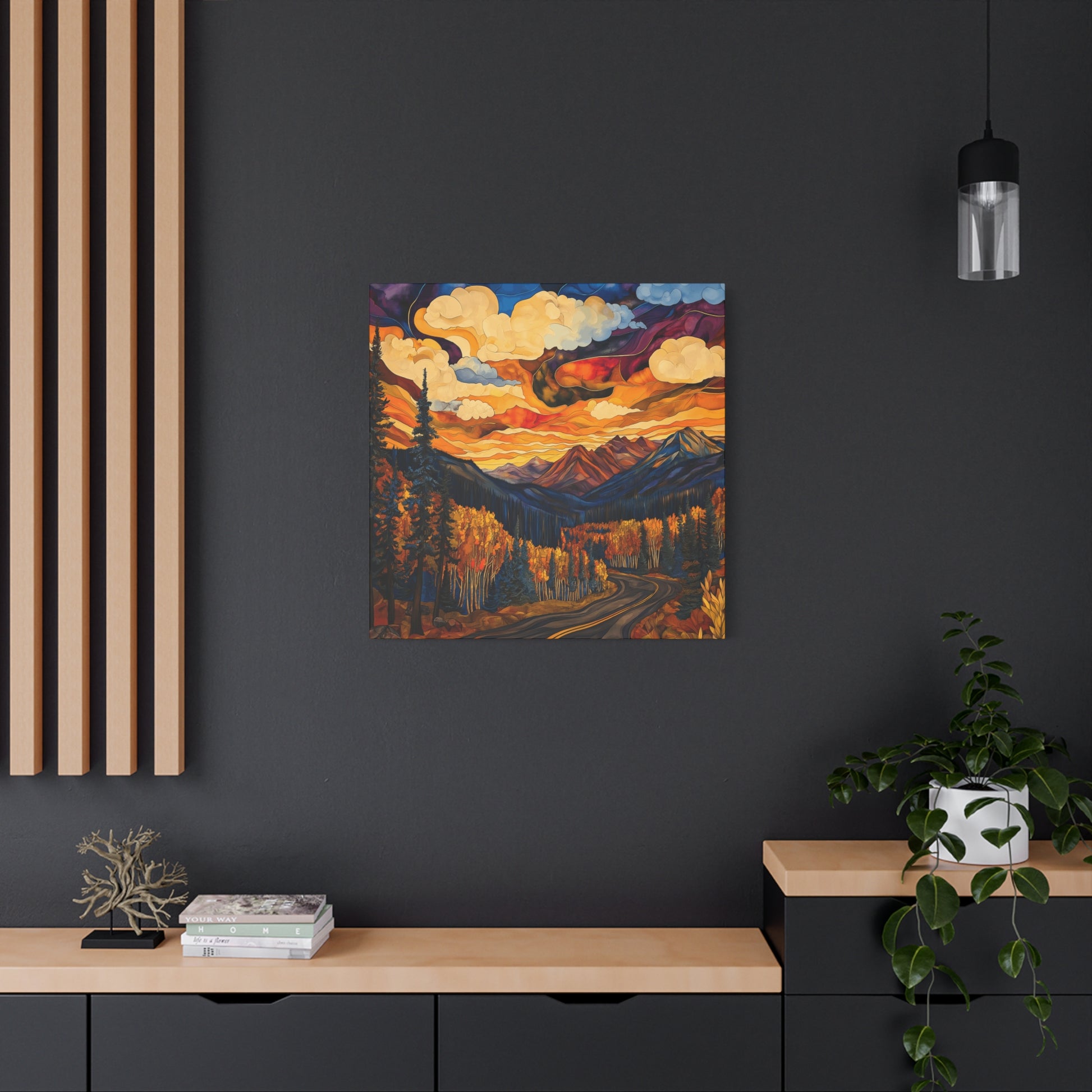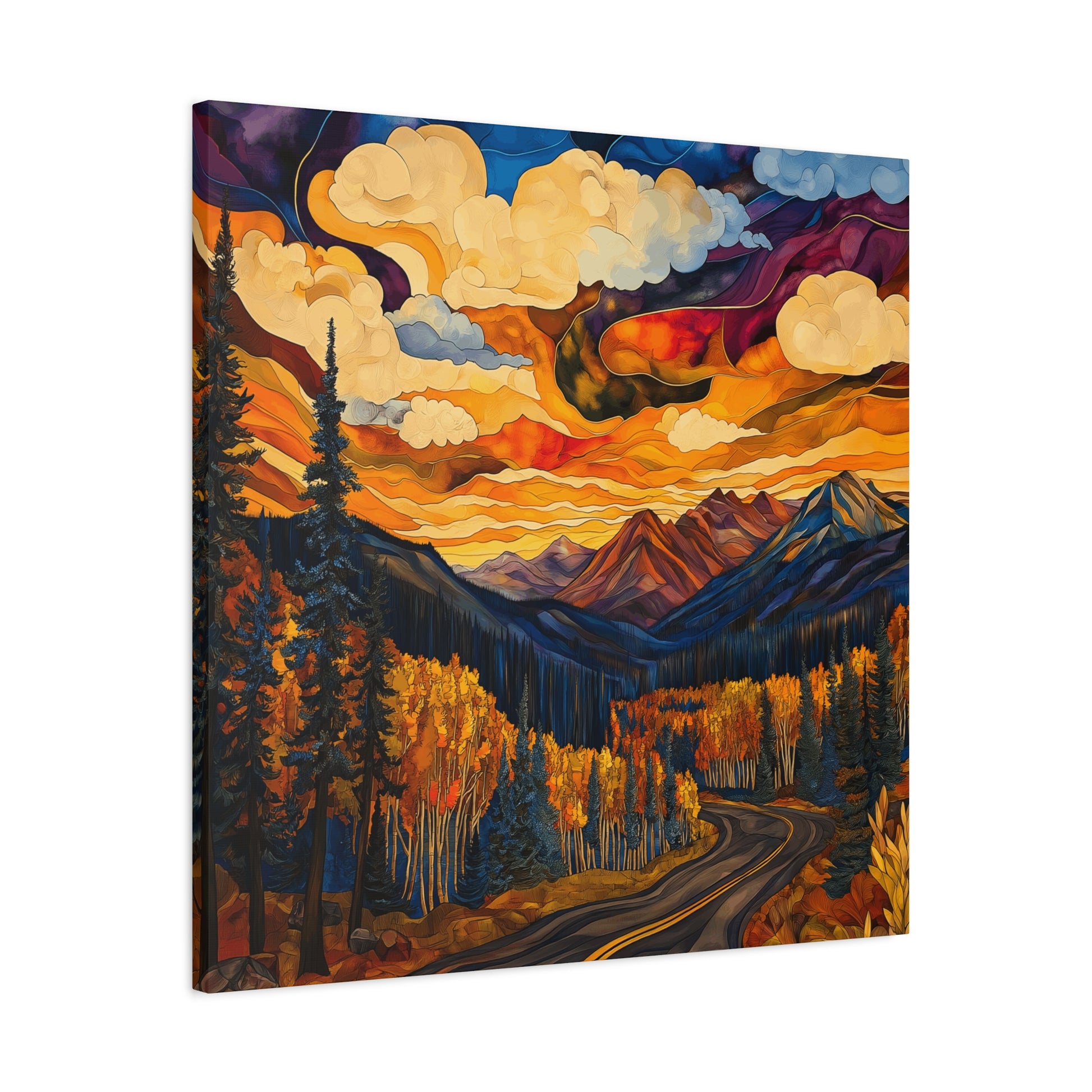 A winding road cuts through untamed, colorful peaks, inviting adventure into the heart of nature’s grandeur. Towering mountains rise beneath a bold, dramatic sky, creating a scene that is both awe-inspiring and full of possibility.