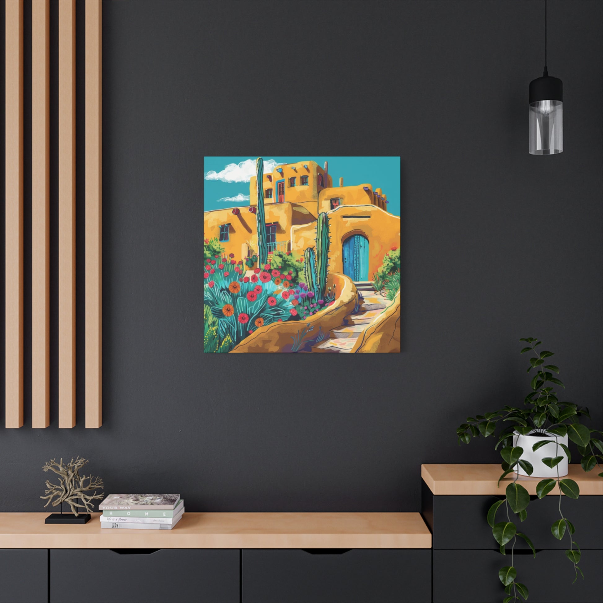 Pueblo Village – Artistic impression of a Southwest casa, rich with colorful charm and infused with a joyful, welcoming spirit. A celebration of vibrant culture and timeless adobe beauty.
