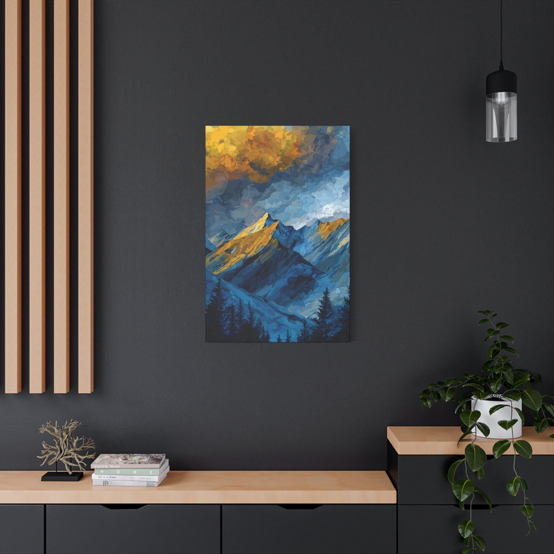 The Colorado Rockies are bathed in breathtaking golden light as sunset ignites both the clouds and the rugged peaks in a shimmering glow. The scene captures the fleeting moment when mountain and sky unite in radiant brilliance—nature’s own masterpiece of color and contrast. A celebration of the Rockies at their most luminous.