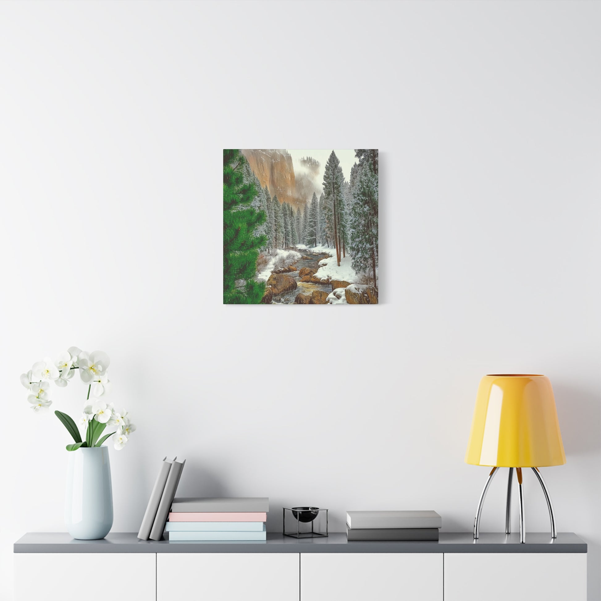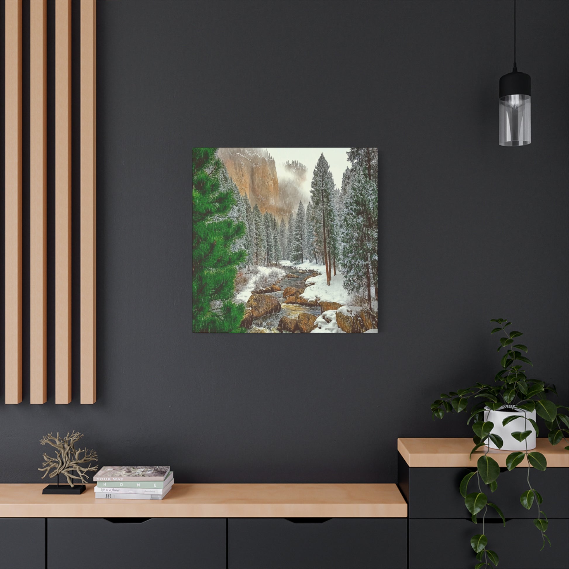 Snow-draped evergreens stand tall along the banks of a winding, ice-edged creek, their rich green tones glowing against the crisp white of winter. Set in the heart of Colorado’s magnificent Rocky Mountains, this serene scene captures the quiet beauty and timeless strength of the wilderness in its coldest, most peaceful season.