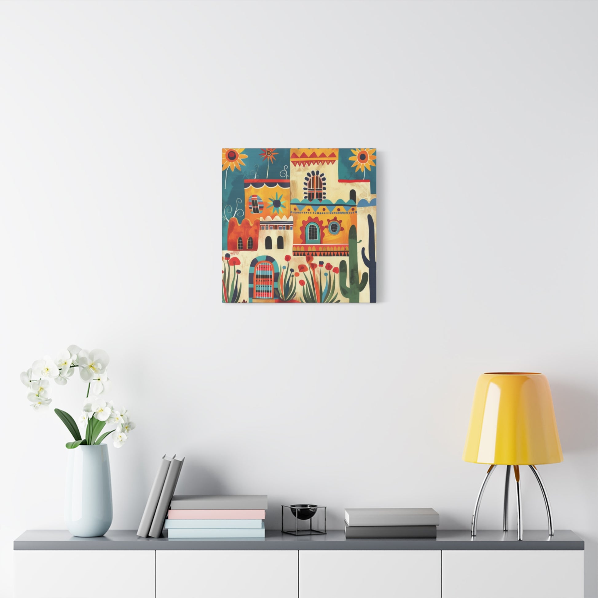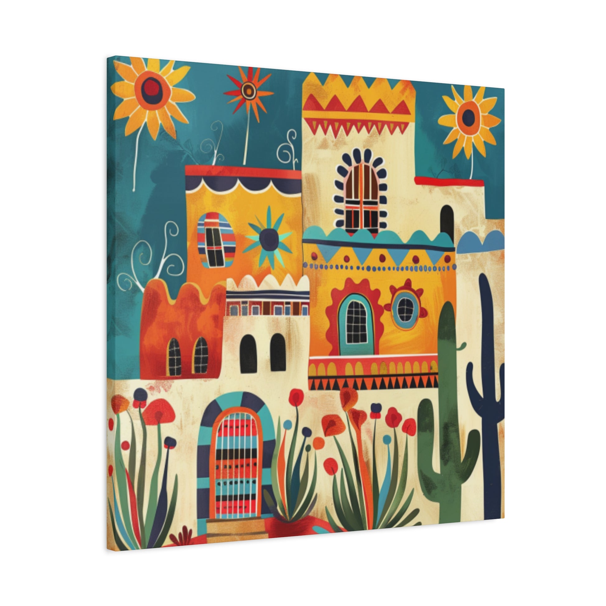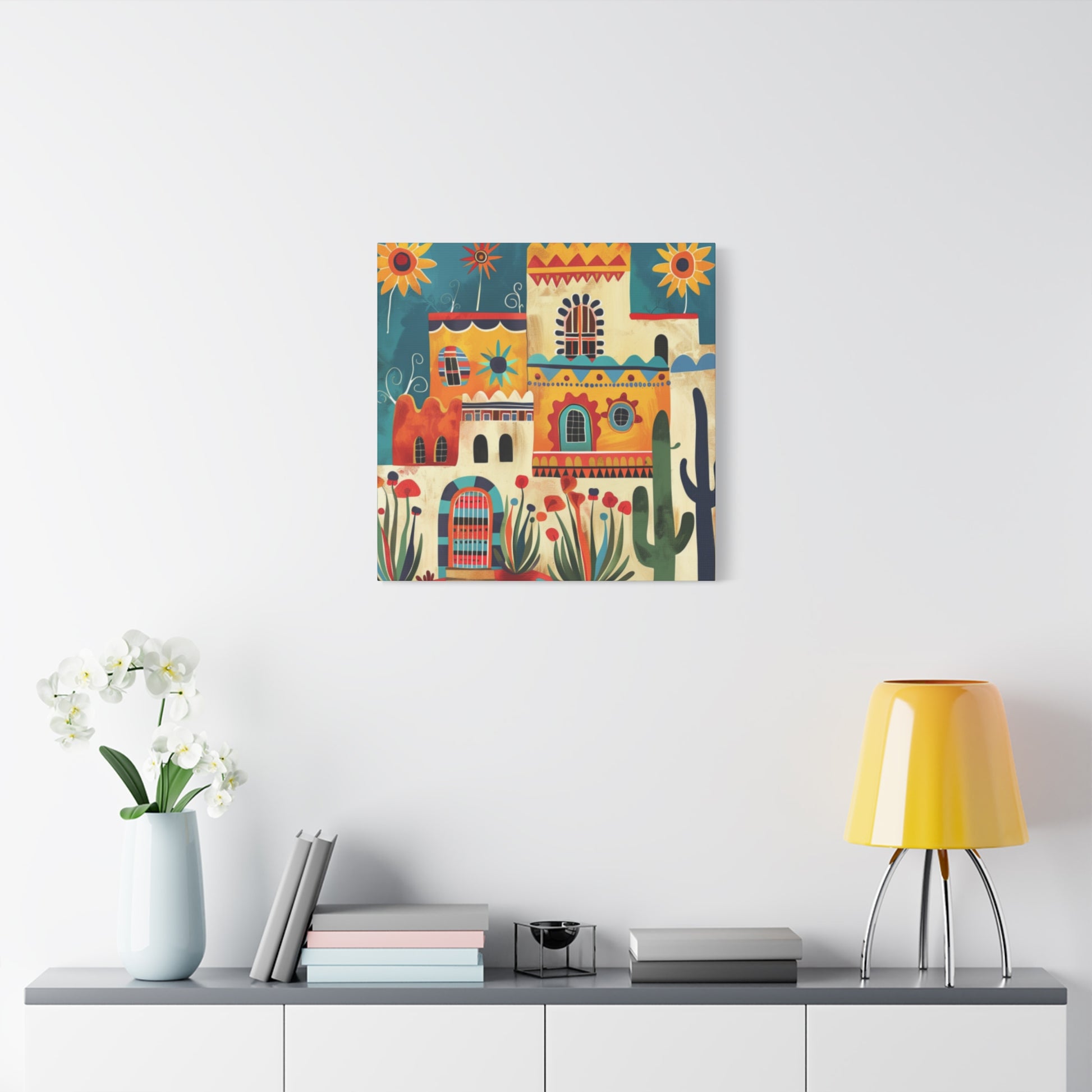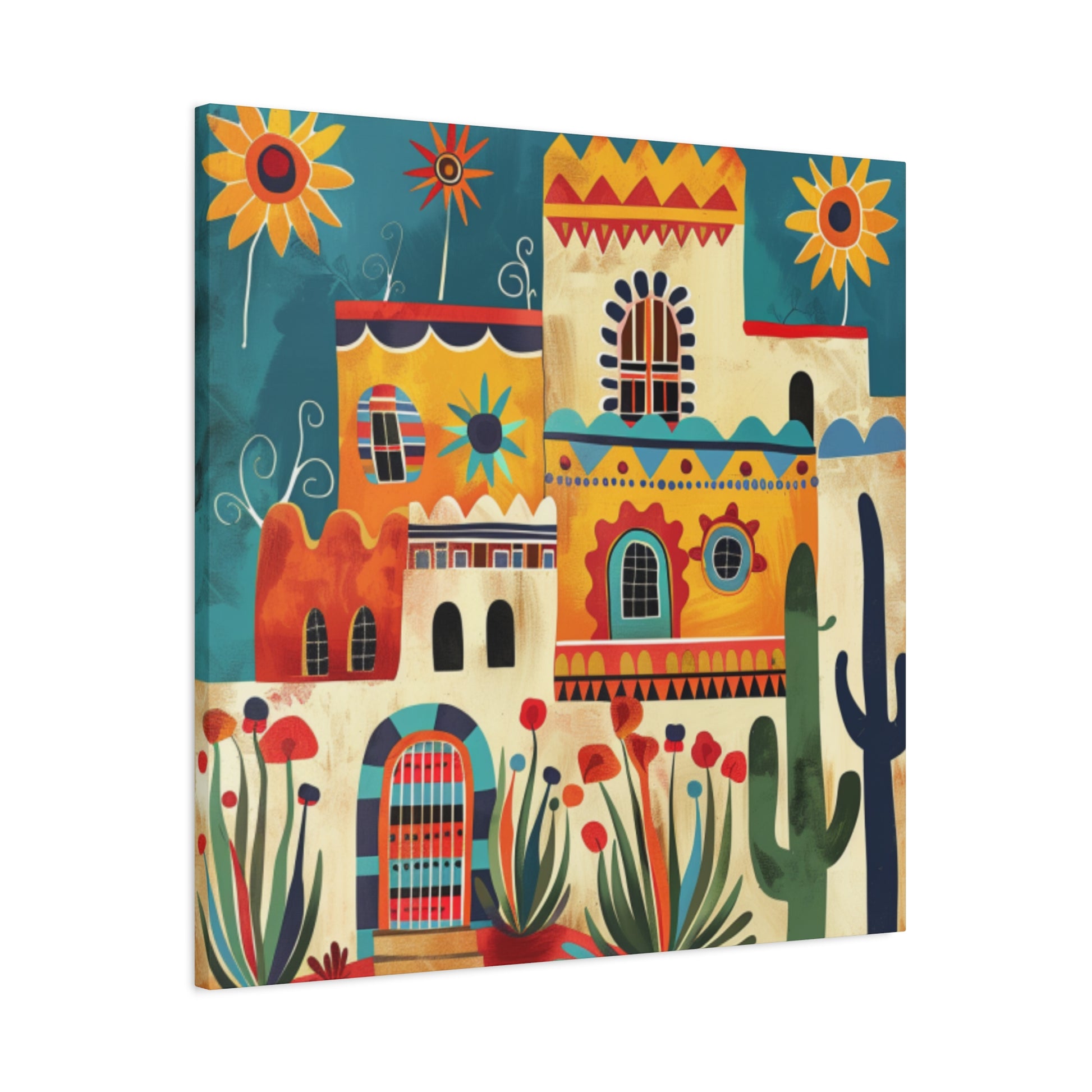 SF Pueblo – Abstract, impressionist interpretation of a Santa Fe pueblo, brought to life with bold forms and vibrant, colorful designs that capture the city’s artistic soul.